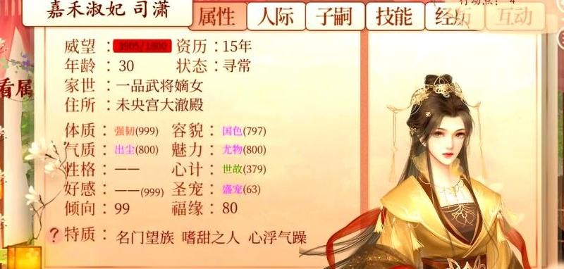 不同性格的太后处理策略得区分开。擅权太后最吃家族势力这套,多请安加政务协助能触发家族晋升事件,每月至少跑两次建章宫是基本操作。精敏太后偏爱高属性妃子,得死磕容貌气质数值,配合高心计才能解锁她的剧情妃梅雪燃,后续选项还影响"太后亲信"特质获取。避世型最省心,择灵剧情妃只要奉天楼偶遇5次加50好感就能触发,宫里斗得再凶她也不太插手,适合新手苟发育。