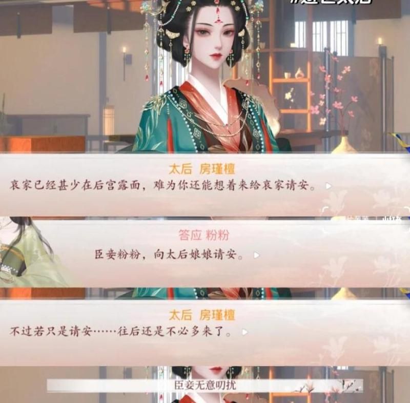 关键得看日常积累,宽和太后这儿,蹲点建章宫超20次加上好感50是保命门槛。要是能把好感怼到80以上,选项随便挑都不触发幺蛾子。要是手头没攒够好感,麻溜去奉天楼祈福或者送点檀香、玉观音这类礼佛用品救急,这类东西涨好感贼快。平时陪太后唠嗑选"宫廷事宜"话题,一次能薅3点好感;宴会上给她敬个酒,直接+5好感,比临时抱佛脚稳多了。要是赶上太后心情好赏你墨宝,转手卖掉或送给交好的嫔妃,还能再捞一波人情。